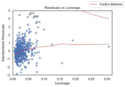 'Cook\'s distance') # 0.5 line