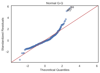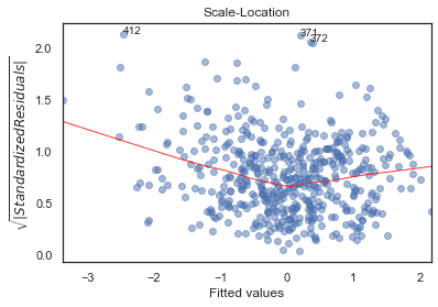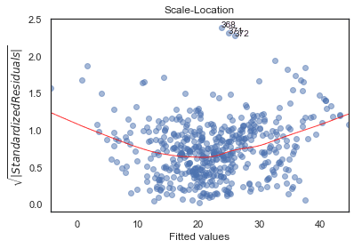 plot_lm_4.legend(loc='upper right');diagnostic_plots(X, y)
