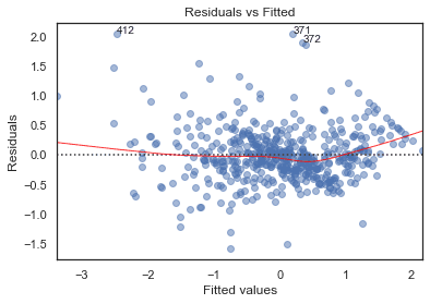 plot_lm_4.legend(loc='upper right');diagnostic_plots(X, y)